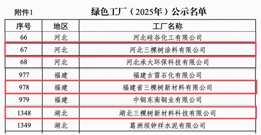 加快推动全面绿色转型,以碳达峰碳中和为牵引,协同推进降碳、减污、扩绿、增长,增强绿色发展动能。在“双碳”目标引领下,绿色转型已成为产业升级的核心命题。将低碳理念深度融入生产全流程,正成为衡量企业未来实盘10倍杠杆app下载竞争力的关键标尺。3月18日,中华人民共和国工业和信息化部公布2025年度绿色制造名单,三棵树旗下河北三棵树涂料有限公司、福建省三棵树新材料有限公司、湖北三棵树新材料科技有限公司三大生产基地凭借可持续发展实践,成功获得国家级“绿色工厂”的殊荣。