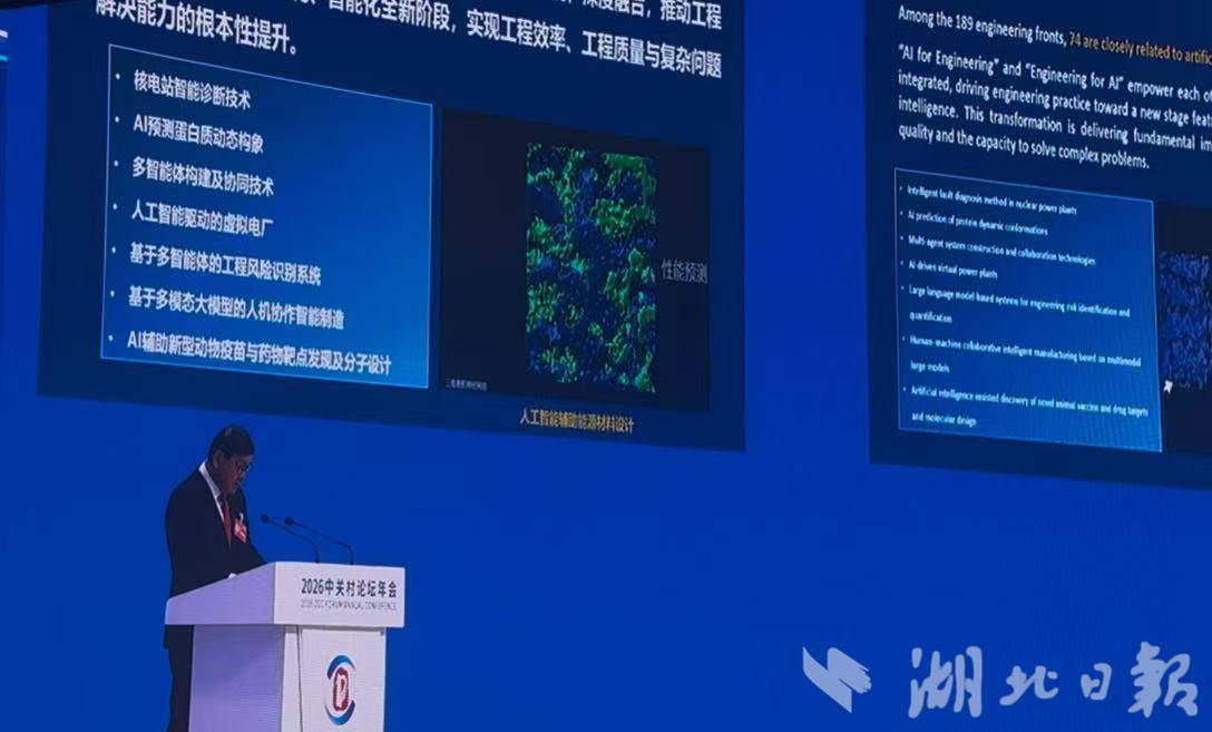 湖北日报讯(记者文俊、李玉麟)3月25日,2026中关村论坛年会开幕式暨全体会议上,中国工程院院长李晓红发布“2025全球工程前沿”。该成果从全球216万篇高影响力论文、53万项高影响力专利以及科技新闻等多源数据中,研判确定了94个工程研究前沿和95个工程开发前沿。